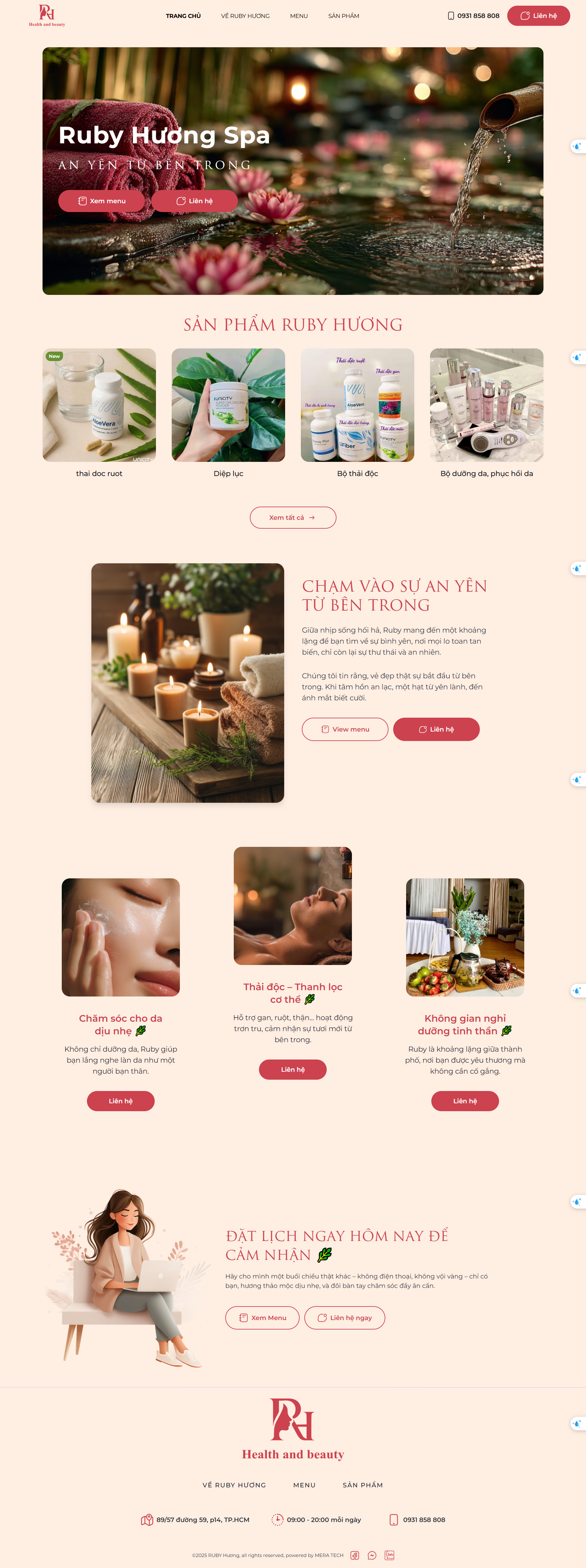MERA đã đồng hành cùng nhiều spa xây dựng website chuyên nghiệp, trong đó có AMOR Thảo Mộc Spa và Ruby Hương Spa thương hiệu nổi bật với dịch vụ gội đầu dưỡng sinh và trị liệu cá nhân hóa.